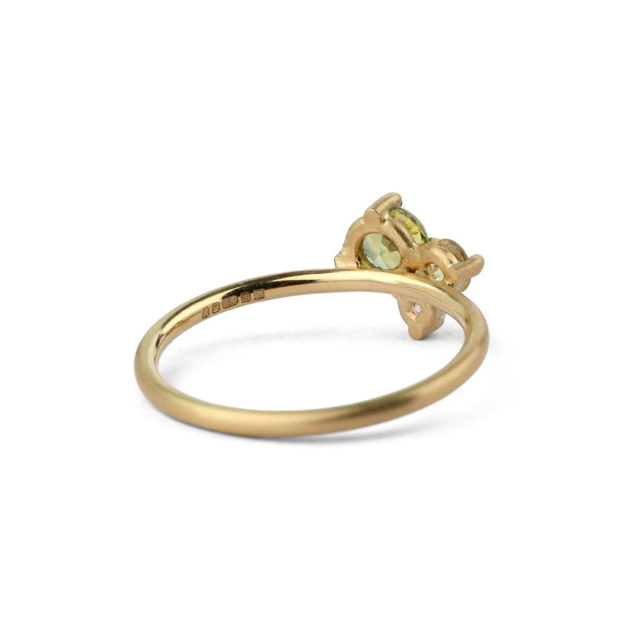 The hand-drawn 18ct gold band holds three brilliant-cut stones - beautiful sapphires and diamonds. The band has a silky satin finish to perfectly compliment the glittering stones.